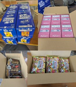 八戸東高校生徒会様よりお菓子を寄付していただきました。生徒会の皆様、顧問の戸田先生、どうもありがとうございました。