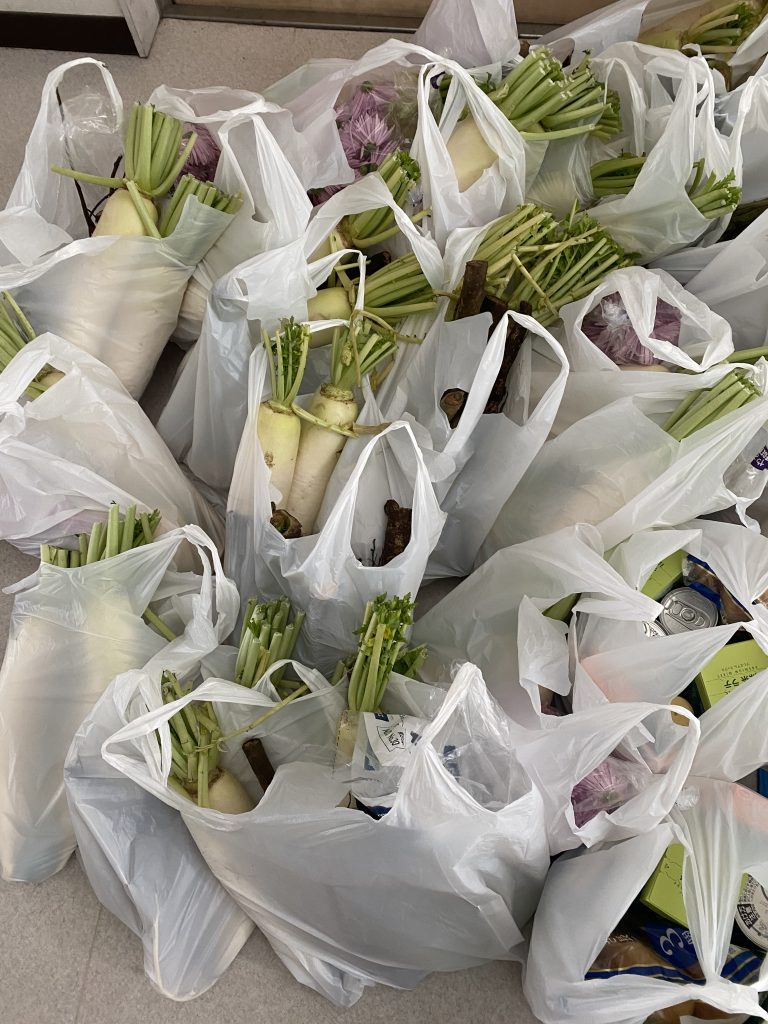 いただいた野菜はフードパントリーで袋詰めにしてお渡ししました。