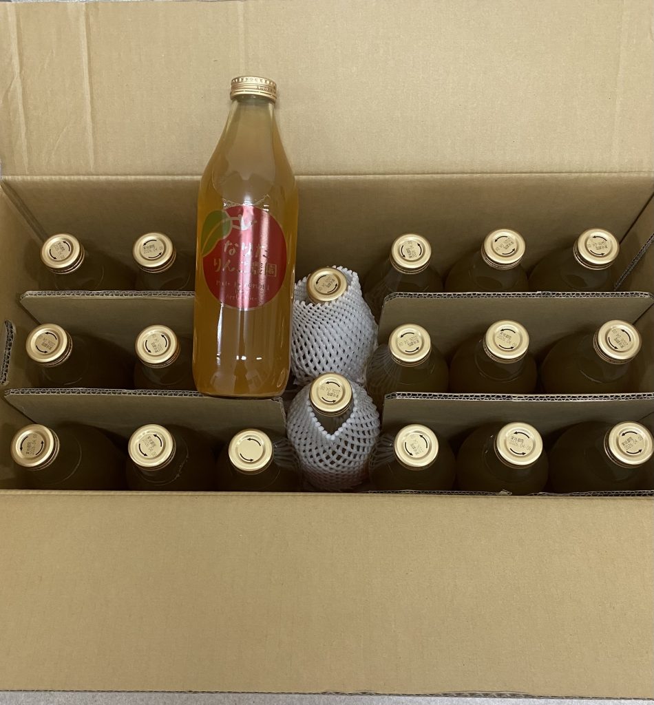 弘前市のなりたりんご農園様より、りんごジュース1ケース(21本)を寄付していただきました。