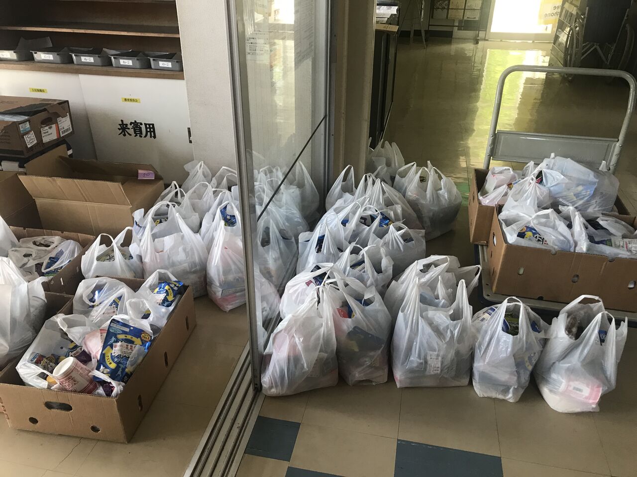 6/27(日)長者公民館でフードパントリー(こども宅食おすそ分け便)を行いました。会場での袋詰め食品の配布51世帯、宅配10世帯の合計61世帯に食料品を配布しました。今回は、市内在住の方から頂いた精肉(鶏もも肉2枚入れ)の配布もあり、大好評でした。