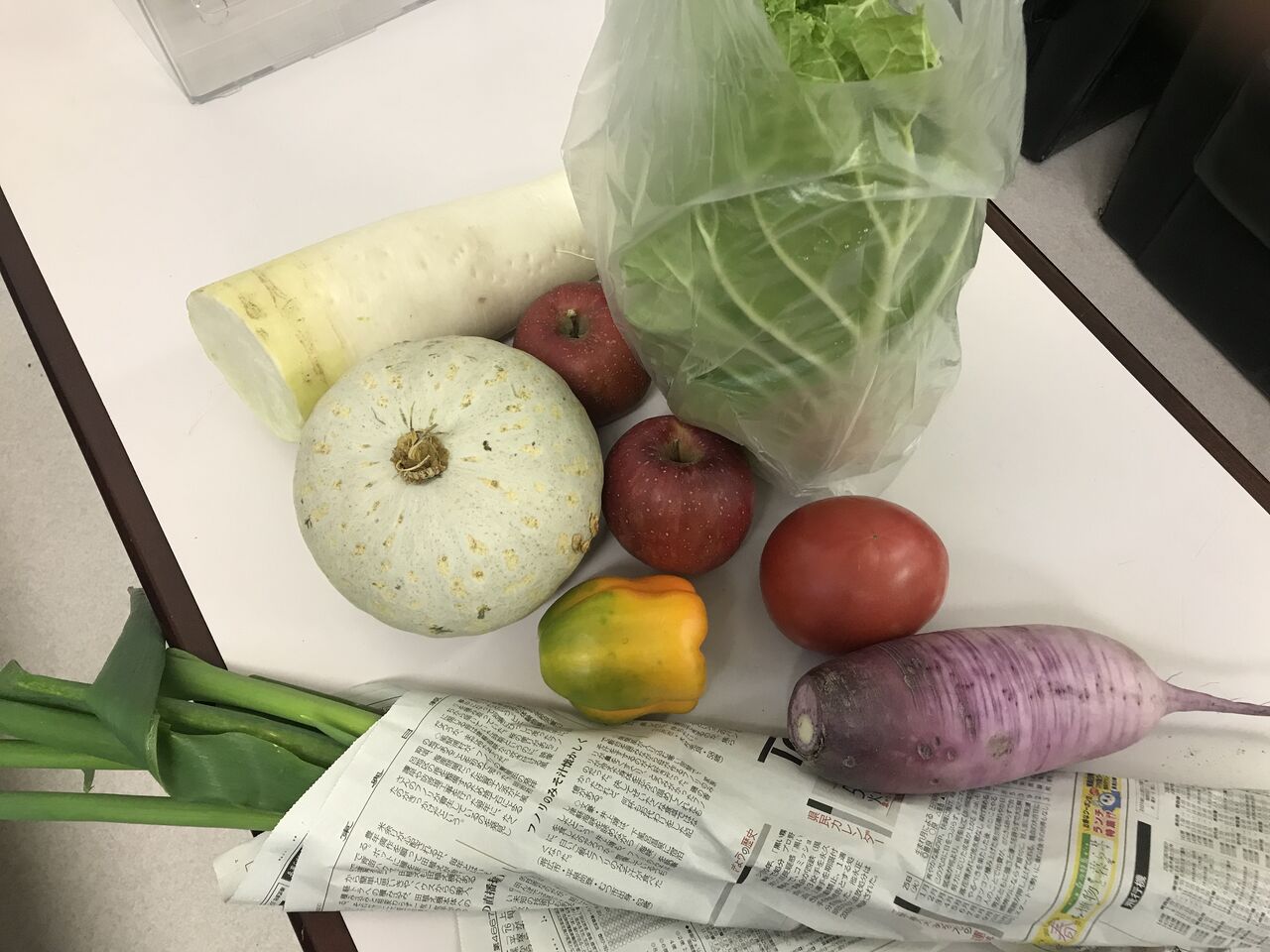 11/28(日)フードパントリーを行いました。缶詰やカップラーメン、お肉、お菓子などの食料品1袋、米2キロ、大根や長ねぎ、人参、みかんとりんごなどの野菜と果物1袋、ティッシュペーパーやラップ、マスクなどの日用品1袋と盛りだくさん。徒歩の方には持ちきれずに2往復する方もいらっしゃいました。フードパントリーを始めた当初とは比べ物にならないほどの品ぞろえです。