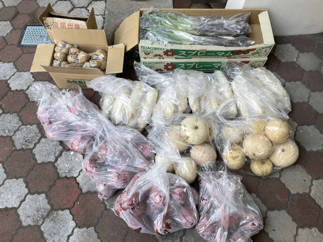 1/29(土)白山台にお住いの「ありいずみ」様より、じゃがいも、大根、長ねぎ、かぼちゃ、赤かぶを寄付していただきました。ご支援いただきどうもありがとうございました。