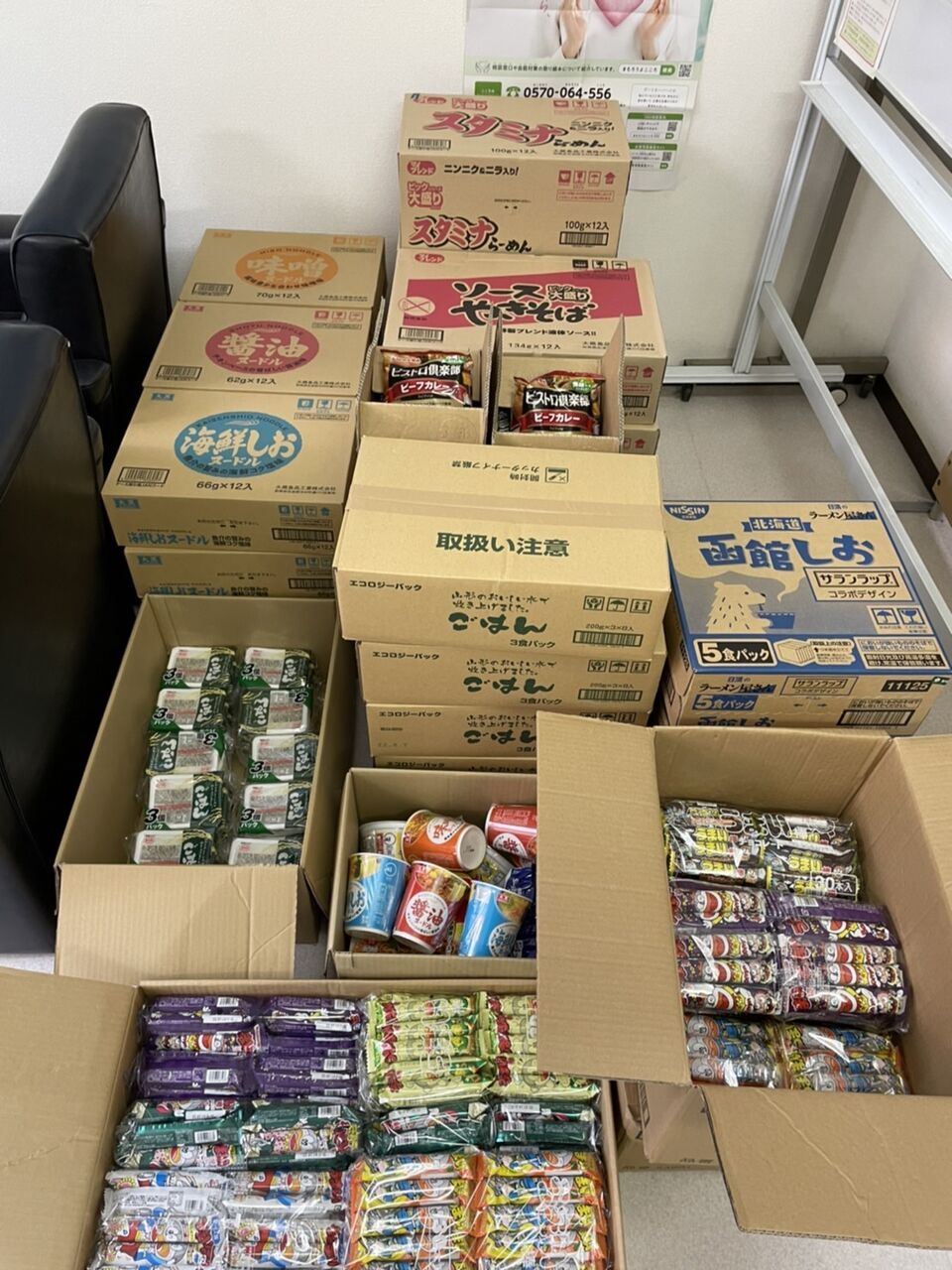 4/20(水)市内在住の小橋様よりカップラーメン20箱、袋ラーメン8箱、うまい棒30本入り20袋、レトルトカレー4食入り25袋、パックご飯3食入り24個を寄付していただきました。いつもご支援いただき、どうもありがとうございました!