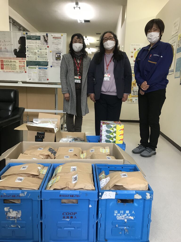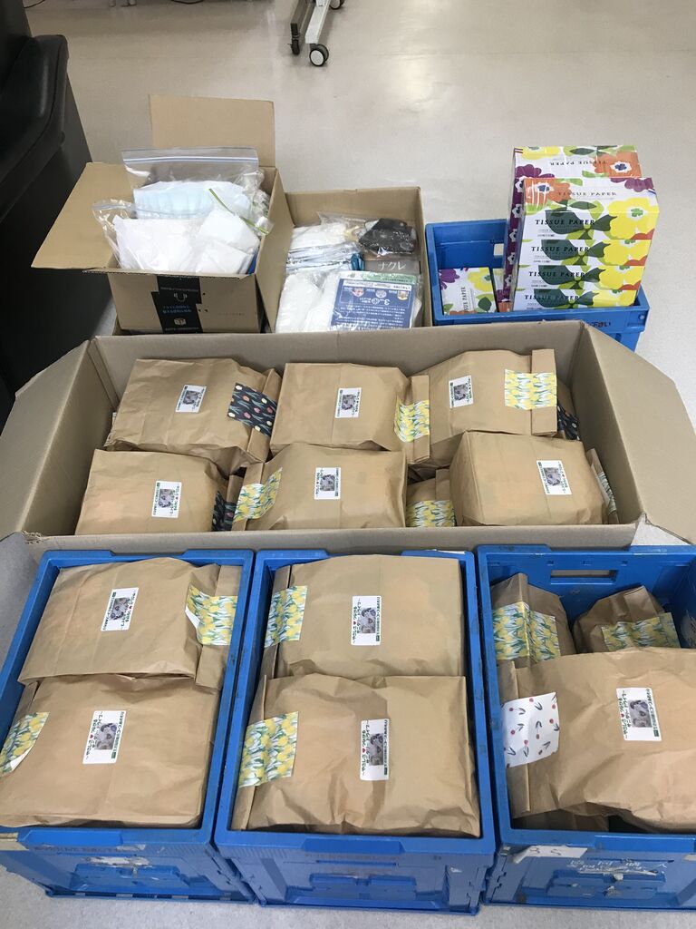 5/20(金)コープあおもり様より女性用品、マスク、ティッシュペーパーの寄付をいただきました。女性用品は一人分ずつ小分けにし、袋詰めまでしていただきました。いつもご支援いただきありがとうございます!