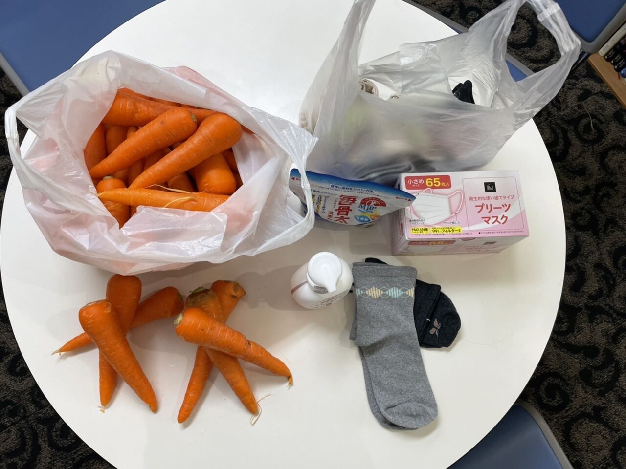 7/12(火)市内在住の吉田様より新鮮な人参や靴下、マスクなどの日用品を寄付していただきました。人参は冷蔵庫に保管し、7/31(日)のフードパントリーで皆さんに配布する予定です。 ご支援いただきどうもありがとうございました!