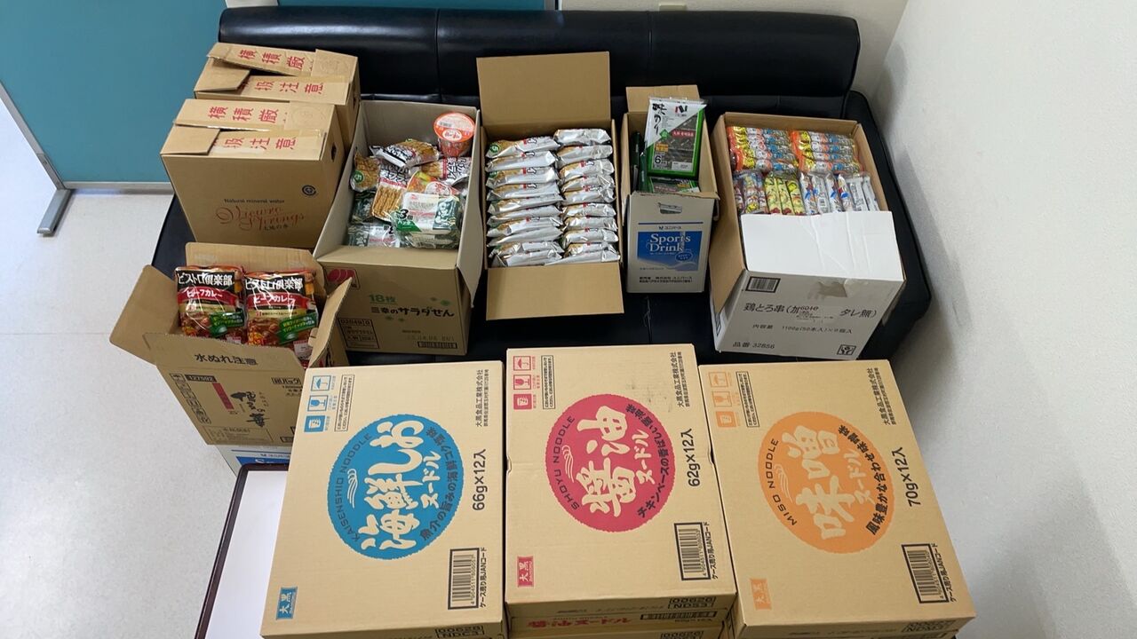 10/19(水)市内在住の小橋様よりカップ麺12箱、味付け海苔25袋、いか姿フライ25袋、うまい棒30本入り12袋、レトルトカレー4食入り50袋、パックご飯3食入り50個を寄付していただきました。ご支援いただきどうもありがとうございました!