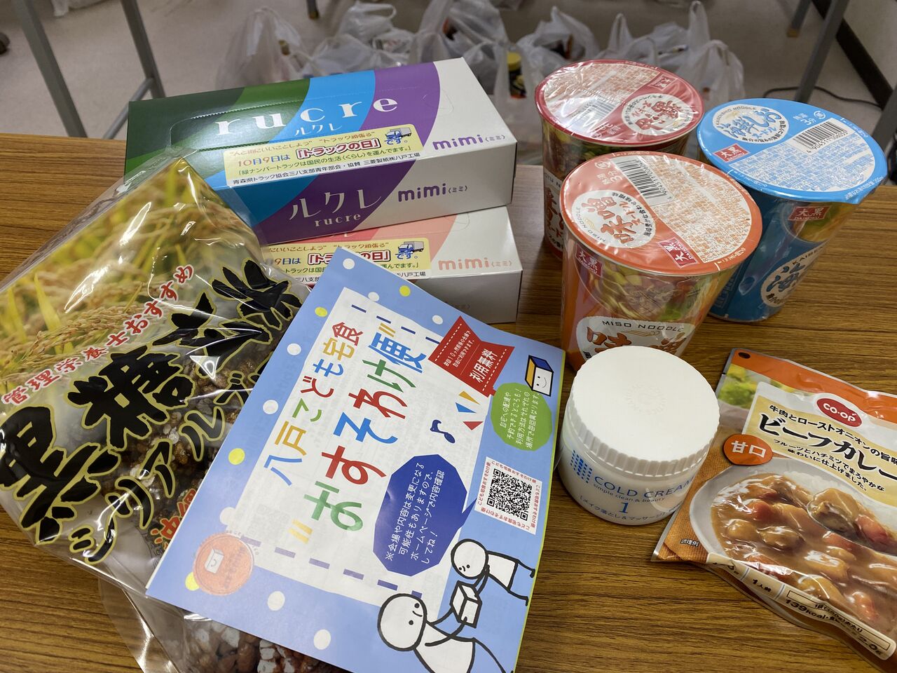 10/30(日)はちのへ若者サポートステーション前でこども宅食を行いました。ホコ天や他のイベントと重なったため、時間をいつもより30分早い8時半から9時、9時から9時半の時間に分けて、合計60世帯様に食料品や日用品を配布しました。今回はトラック協会様よりいただいた缶詰やボックスティッシュが大好評でした。 また、八戸東高校のインターアクト愛好会から5名の生徒さんと先生がボランティアでご参加いただき大変助かりました。 ご協力いただいた皆様、どうもありがとうございました。