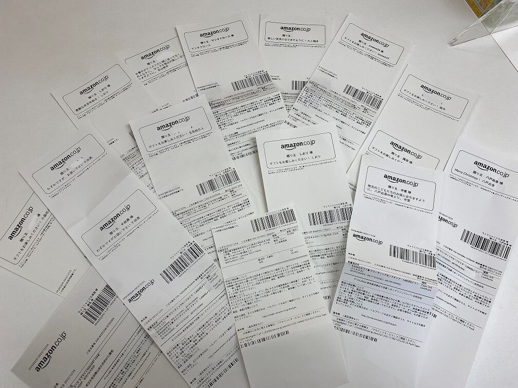 amazonみんなで応援プログラムでたくさんの方がお菓子やギフト券を送ってくれました。ご支援いただきありがとうございました。