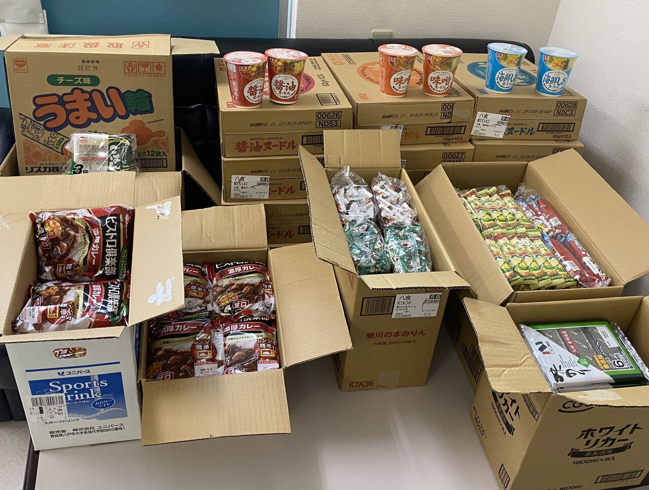 6/21(水)市内在住の小橋様より、カップラーメン150個、レトルトカレー4袋入り24袋、レトルトご飯3パック入り25パック、うまい棒30本入り10袋、味のリ25パックを寄付していただきました。 いつもご支援いただきありがとうございます!
