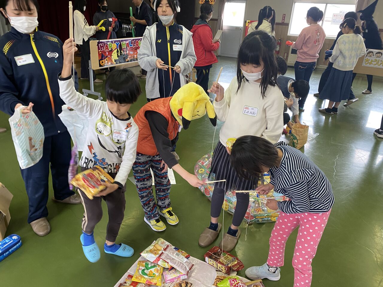 10/29(日)長者公民館でハロウィンイベントを行いました。毎年恒例のお菓子釣りやシューティングゲーム、ハロウィンクイズなどで盛り上がりました。八戸工大二高や八戸東高校の生徒さんが会場の準備や進行などを手伝ってくれ、大変助かりました。八戸干菓子高校からはALTの先生も来てくださり、「Halloween」や「Trick or Treat」など本場の発音を聞かせてもらいました。ご協力いただいた皆様、どうもありがとうございました。