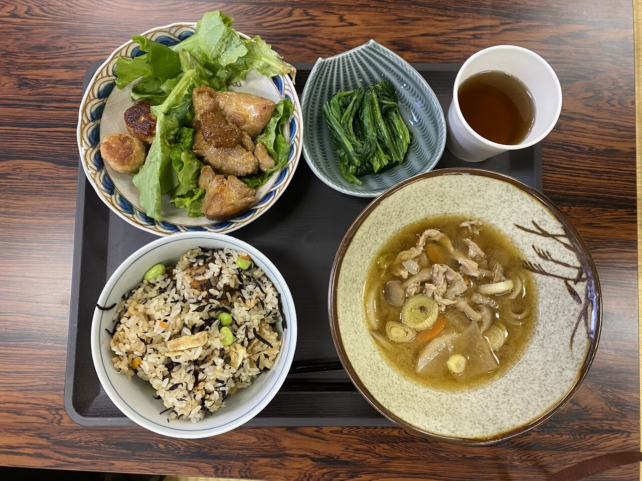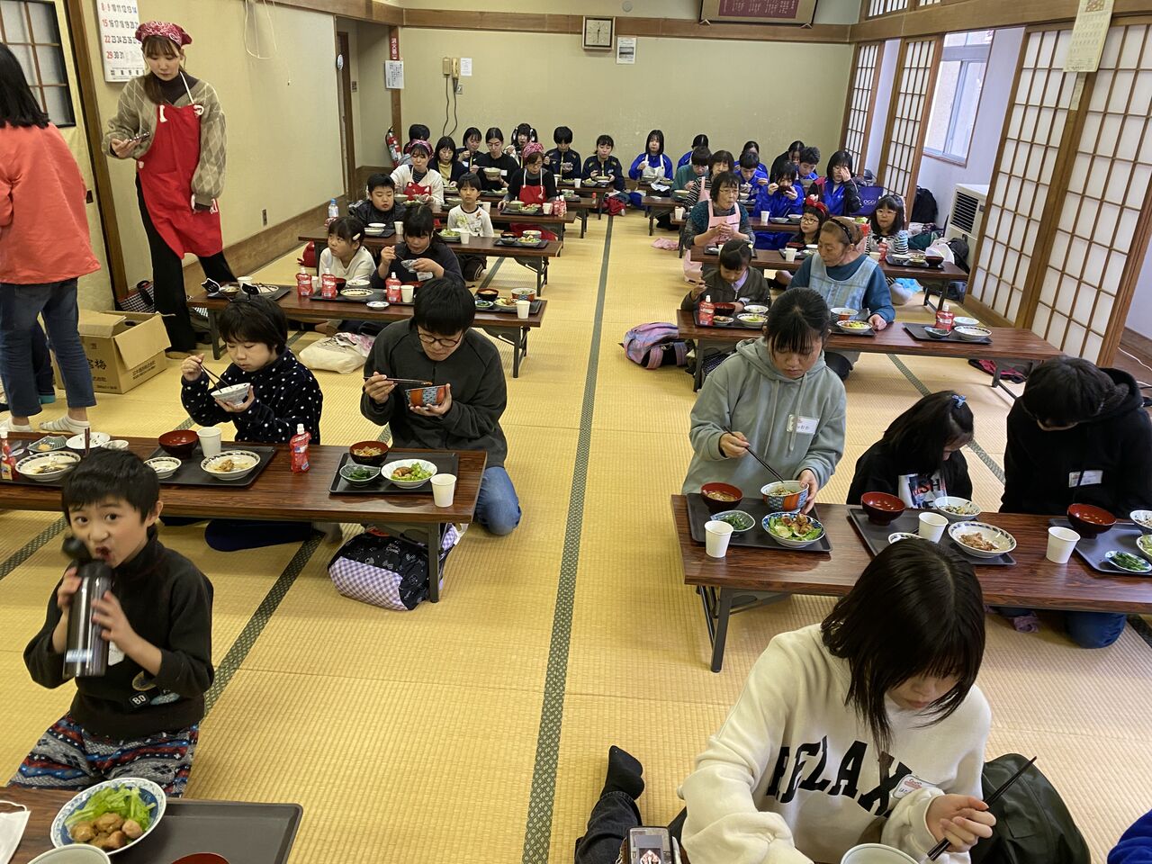 10/29(日)長者公民館でこども食堂を行いました。小学生と高校生、歯磨き教室をやってくれた八戸学院大学の佐藤先生と学生さん、八戸市食生活改善推進員やボランティアの方合わせて約60名が参加しました。今月のメニューはは寄付でいただいた人参や大根、じゃがいも、ねぎを使った豚汁とほうれん草のおひたし、鶏肉の照り焼き、ひじきと枝豆の炊き込みご飯、寄付でいただいたマミーゼリー。残食もほとんどなく、みんなでおいしくいただきました。 ご協力いただいた皆様、どうもありがとうござました。