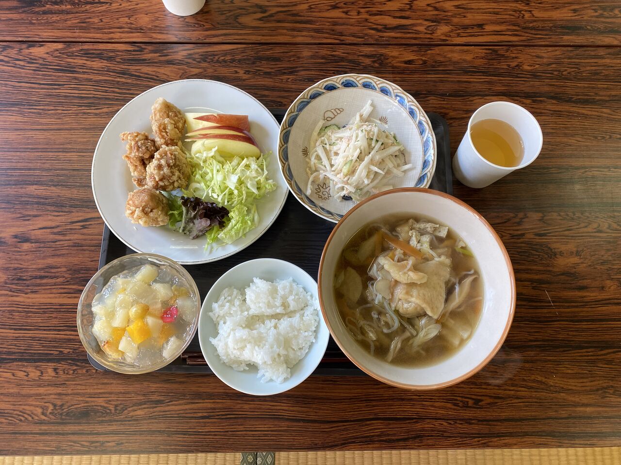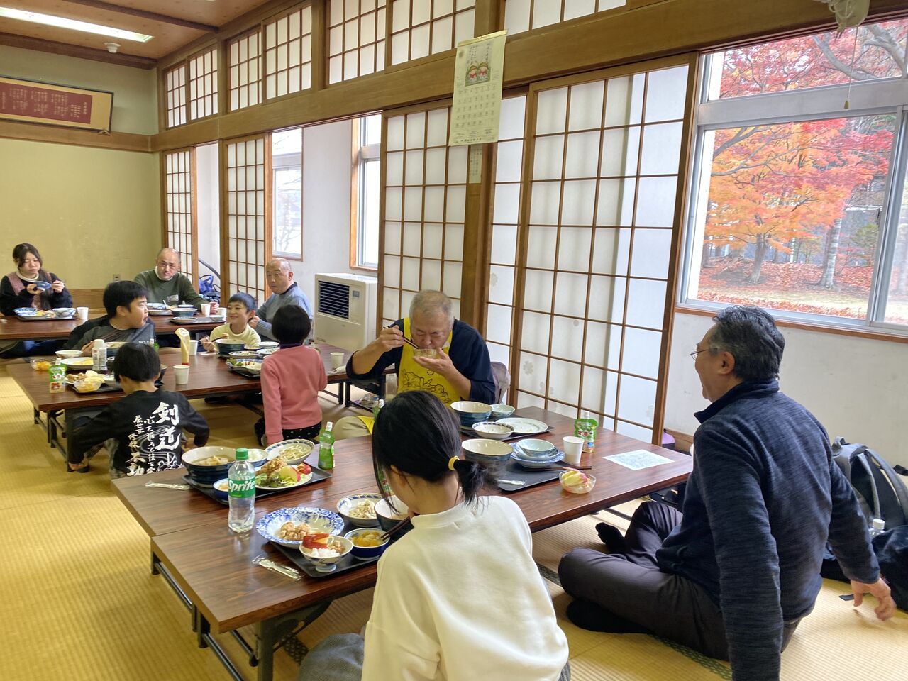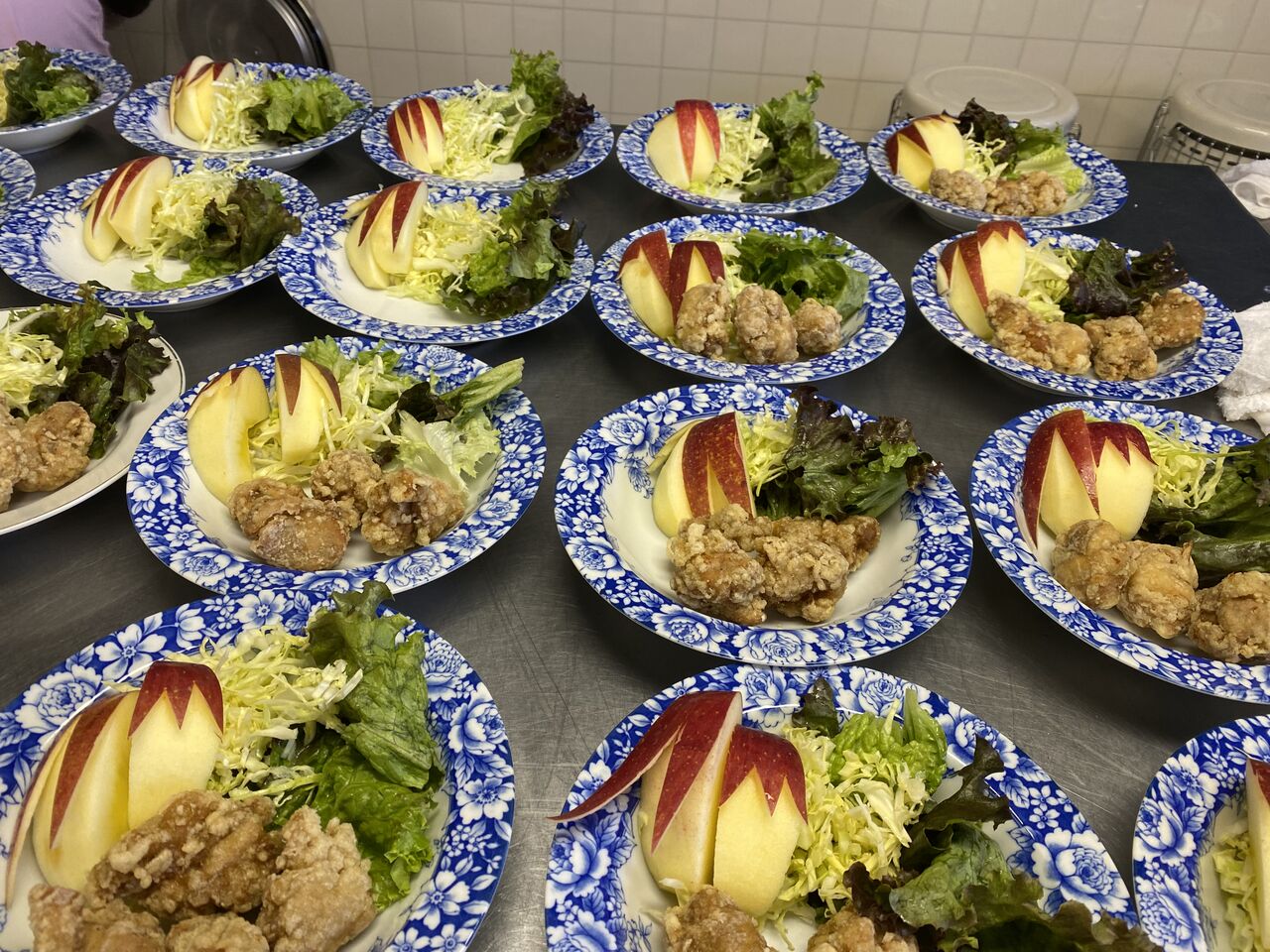 11/26(日)長者公民館でこども食堂を行いました。小中学生とボランティアの高校生、環境講座を担当してくれた青森県環境パートナーシップセンターの工藤様、青森県地球温暖化防止活動推進員(アースレンジャー)の佐々木様、八戸市食生活改善推進員やボランティアの方、「青森県こどもの居場所づくりコーディネーター養成講座」の実習生の方、合わせて約40名が参加しました。寄付でいただいたキャベツや大根、リンゴも使い、郷土料理のせんべい汁、鶏肉の唐揚げ、大根とツナのサラダ、フルーツゼリーとボリューム満点なメニューでした。