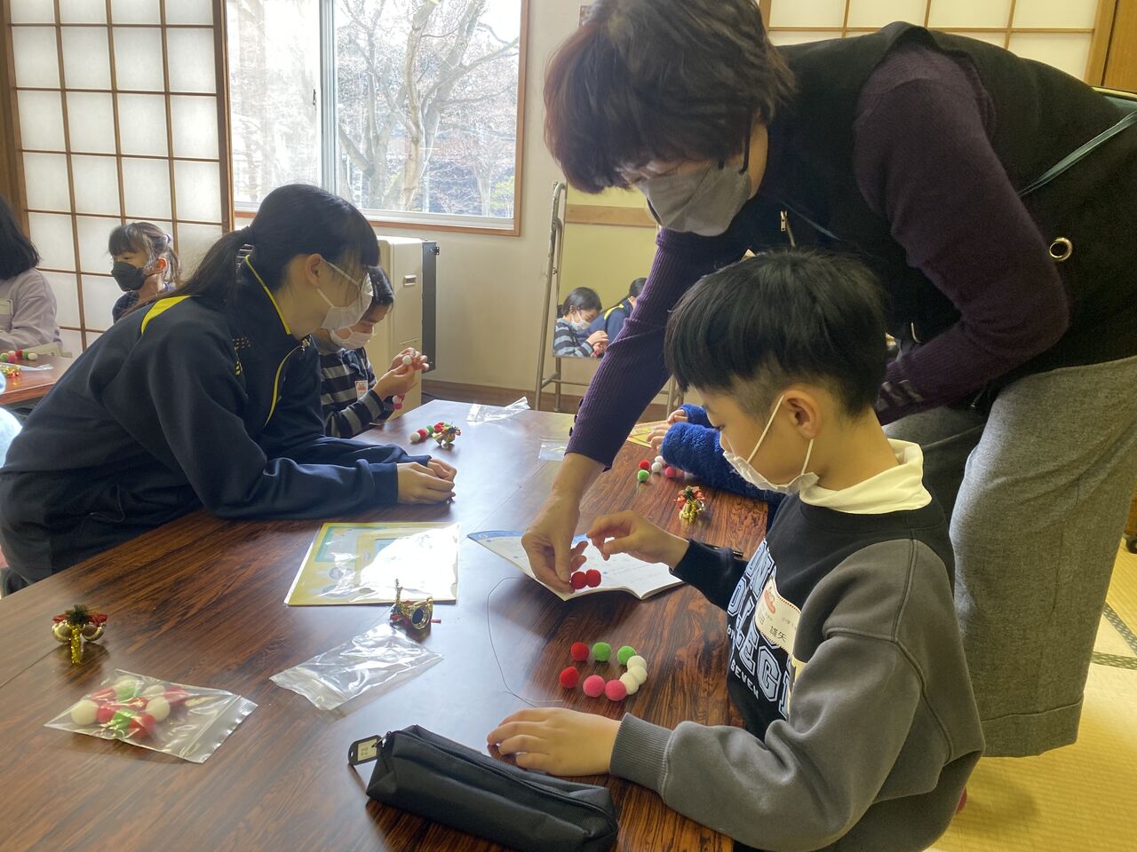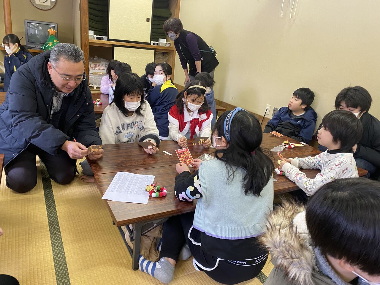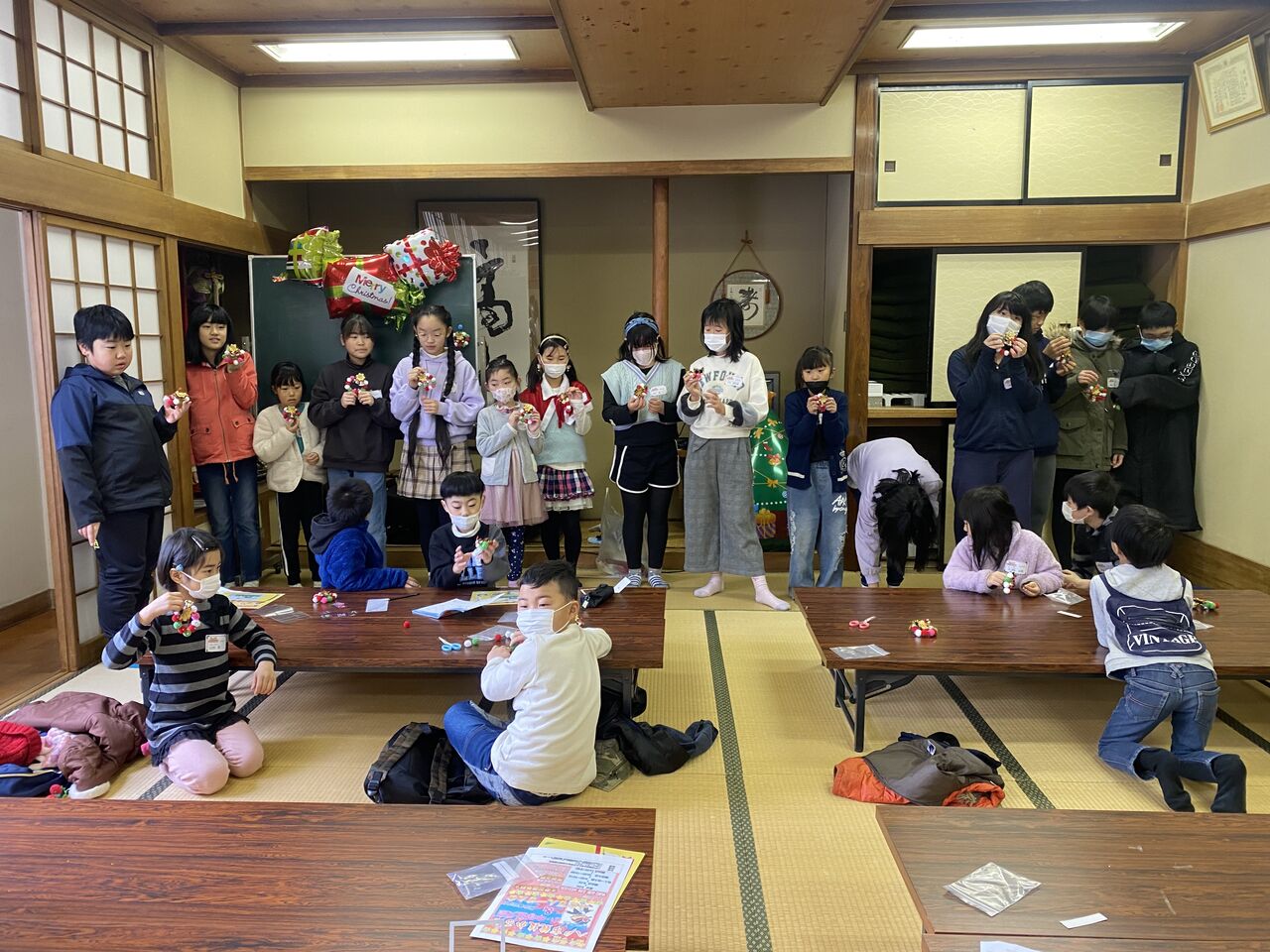 12/17(日)長者公民館でクリスマス会を行い、小中学生25名、高校生18名、大人14名が参加しました。子どもたちはミニリース作りに挑戦し、色とりどりのかわいいミニリースを作りました。ビンゴ大会では高校生のお兄さん、お姉さんに教えてもらいながら「B36」「N51」・・・と番号が呼ばれるたびに大盛り上がりでした。