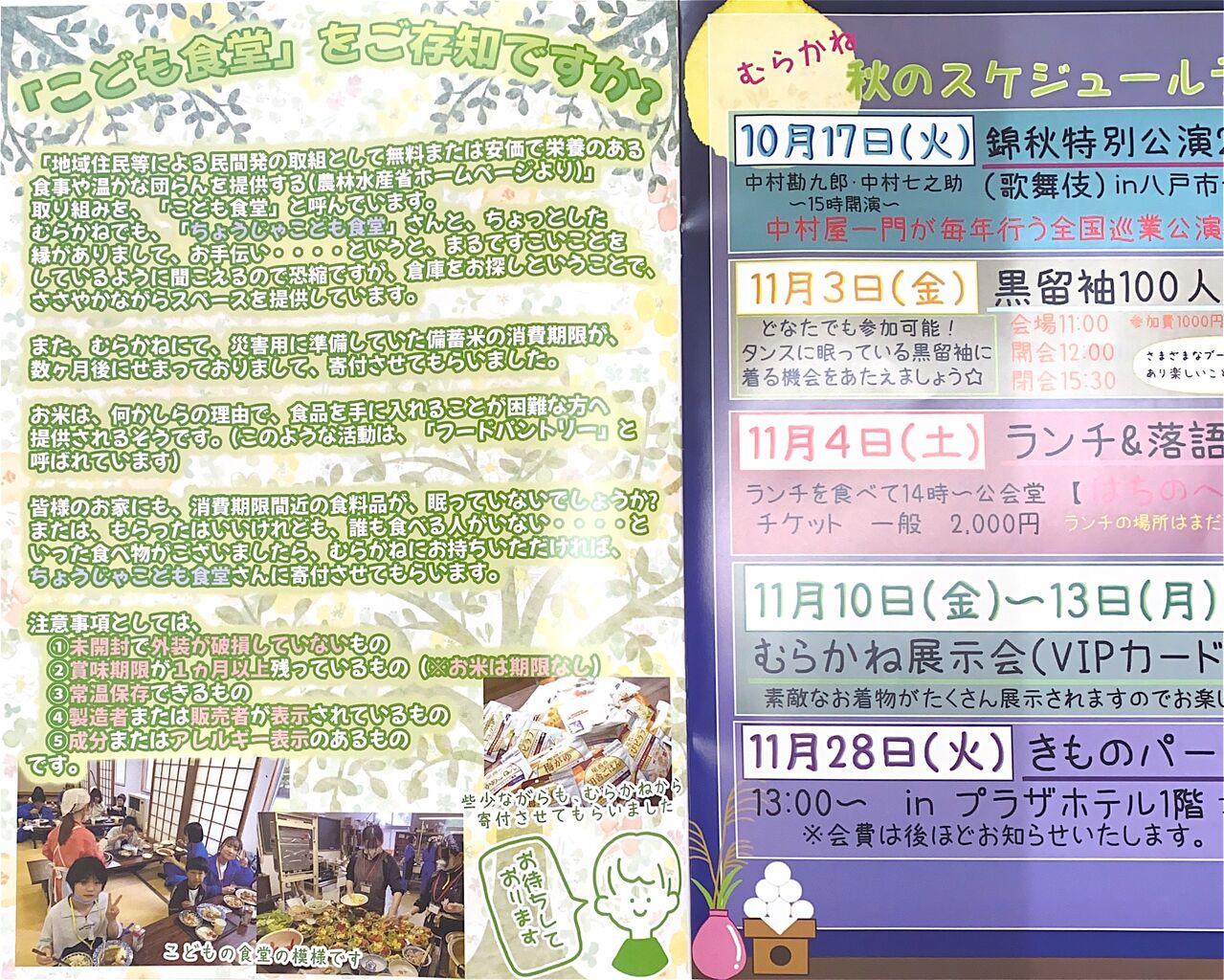 加えて「むらかね」様には、食料品の寄付やお得意様向けに発行している情報誌で「ちょうじゃこども食堂」の紹介までしていただいております。