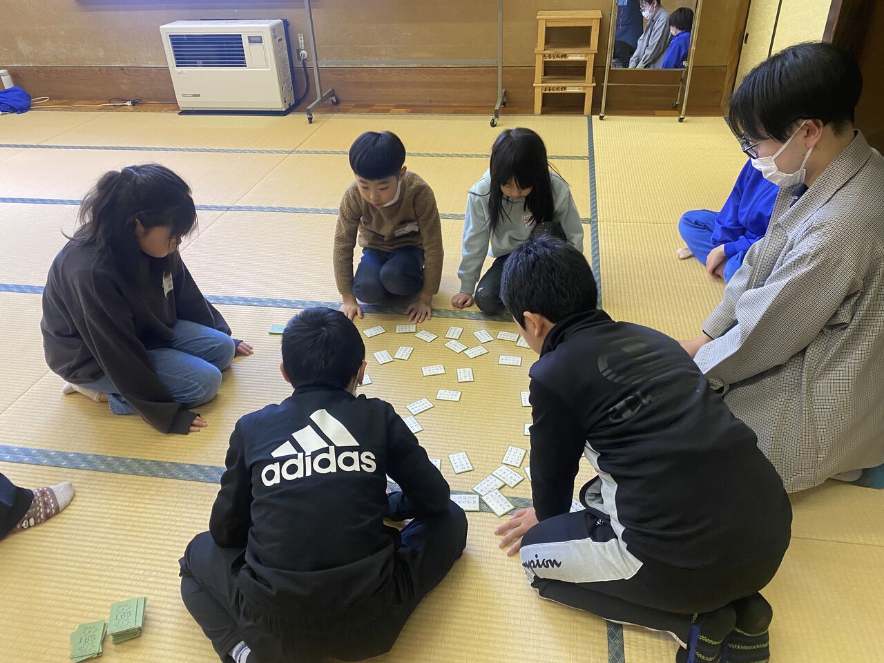 1/28(日)長者公民館で学習会プラスを行いました。今月は八戸工業大学第二高等学校かるた部顧問の和田先生と生徒さんにお越しいただき、競技かるたの実演を見せていただきました。「畳の上の格闘技」とも形容される競技かるたを見るのは初めてという子も多く、いつも賑やかな子どもたちも試合になるとおしゃべりをやめ、真剣に勝負の行方を見つめていました。競技かるたの実演の後は、「百人一首大会」と「八戸郷土かるた大会」を行いました。ご協力いただいた皆様、どうもありがとうございました。