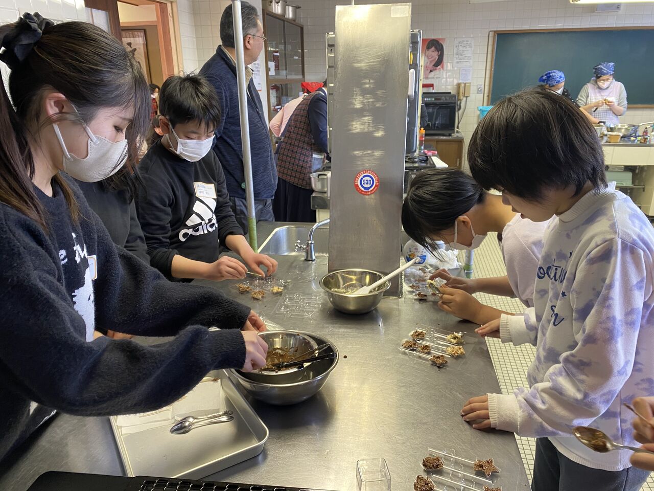 2/18(日)の学習会プラスではスイーツづくりにチャレンジしました。高校生のお姉さんに教えてもらいながらかわいいウサギとクマ、ハート、星のロリポップや、タルトカップを使ってシロクマのタルトを作りました。個性的豊かなウサギとクマが出来上がり、子どもたちも大喜びでした。