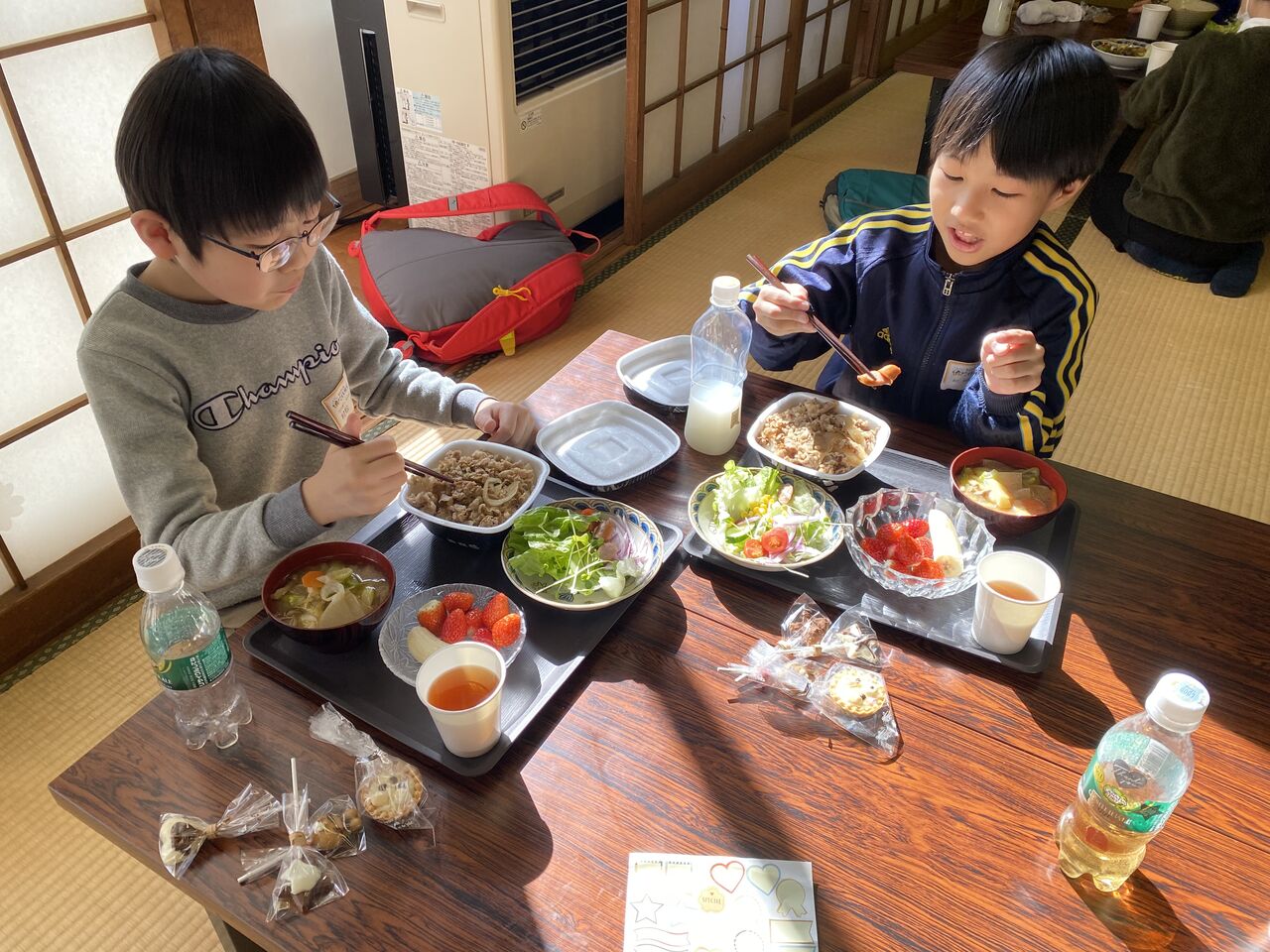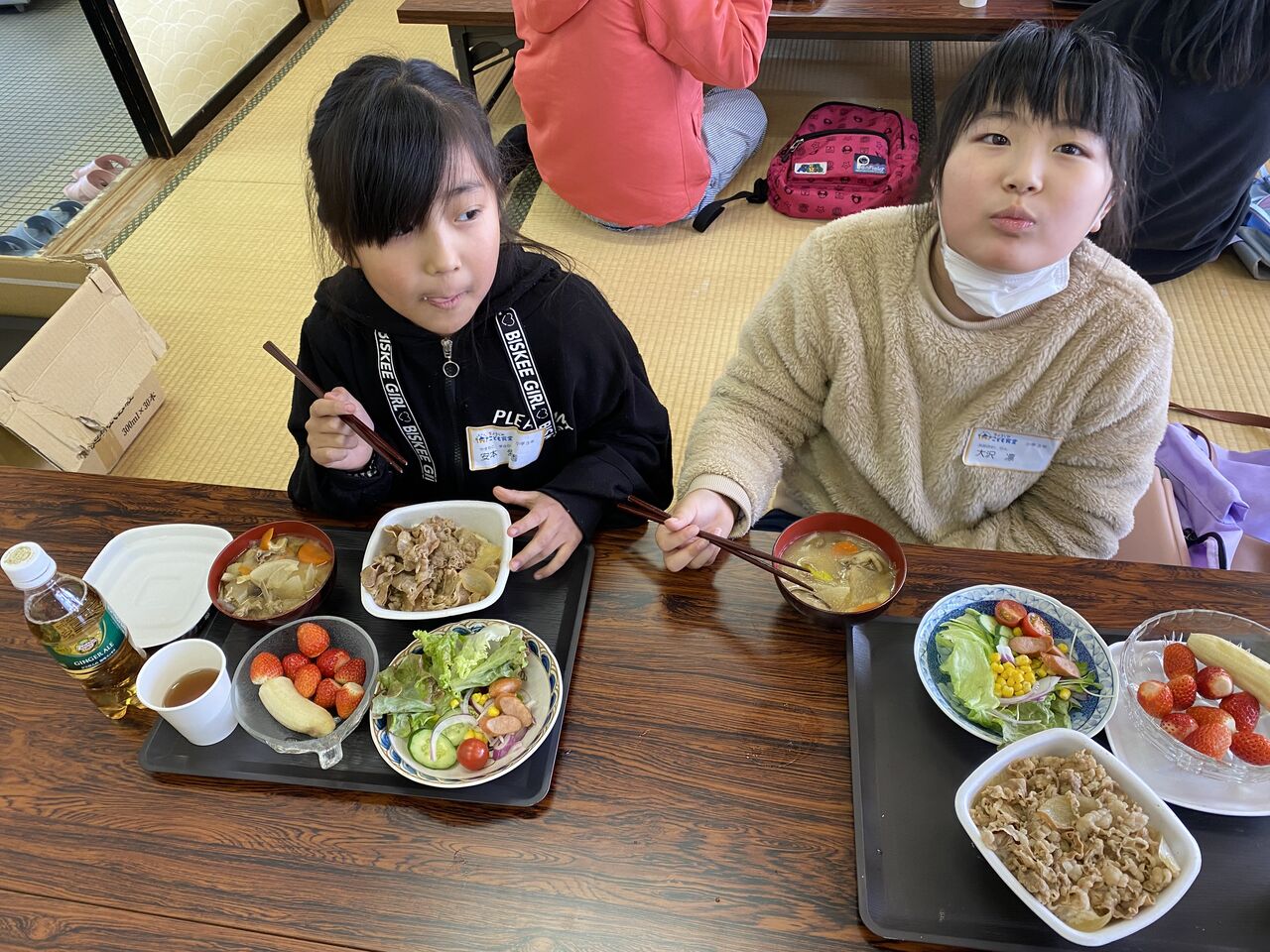 2/18(日)長者公民館でこども食堂を開催しました。吉野家さんよりいただいた牛丼弁当と、豚汁、サラダ、フルーツというとても豪華なメニュー。今回は篠原欣子記念財団様より助成を受け、甘くてとてもおいしい八戸いちごとバナナを提供しました。「イチゴだぁ!!!!」「いっぱいある!!」と食べる前から子どもたちは大興奮。ご支援いただいた篠原欣子記念財団様、どうもありがとうございました。