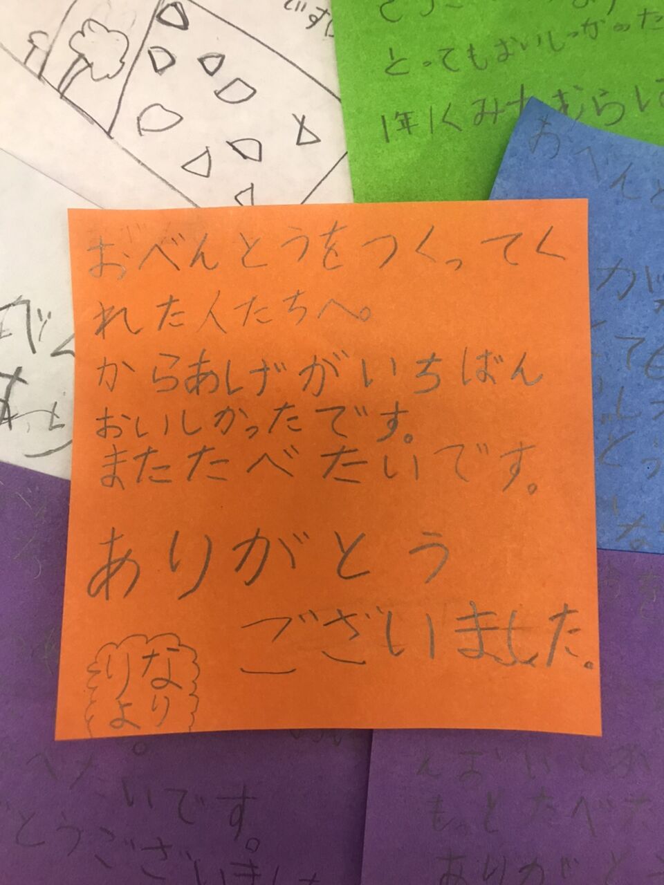 お弁当を食べた子どもたちからお礼のお手紙が届きました。