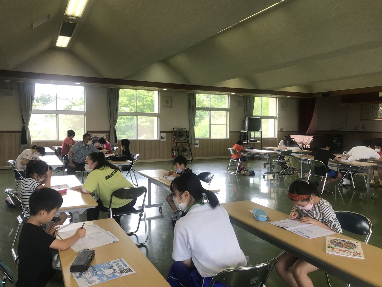 7/25(土)長者公民館3Fホールで学習会を行いました。夏休みの宿題など高校生のお姉さんやお兄さん、先生と一緒に勉強しました。コープフードバンク様よりいただいた飲み物で水分補給をしながら楽しい時間を過ごしました。帰りにはお弁当とジュースのお土産もあり、大好評でした