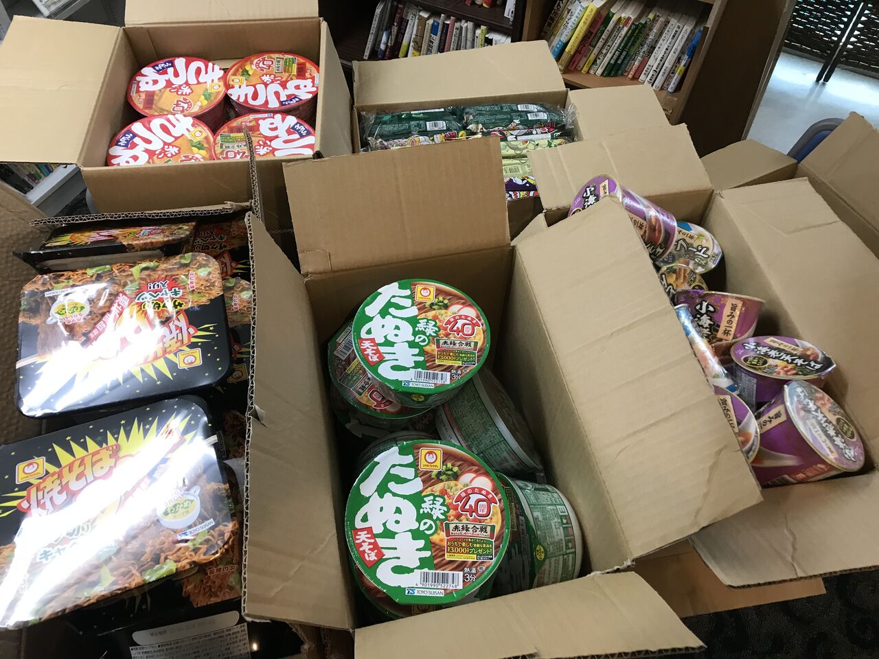 八戸市内にお住いの小橋様より、カップラーメン10箱、うまい棒1箱いただきました。毎月1回行っているフードパントリーで利用させていただきます。どうもありがとうございました。