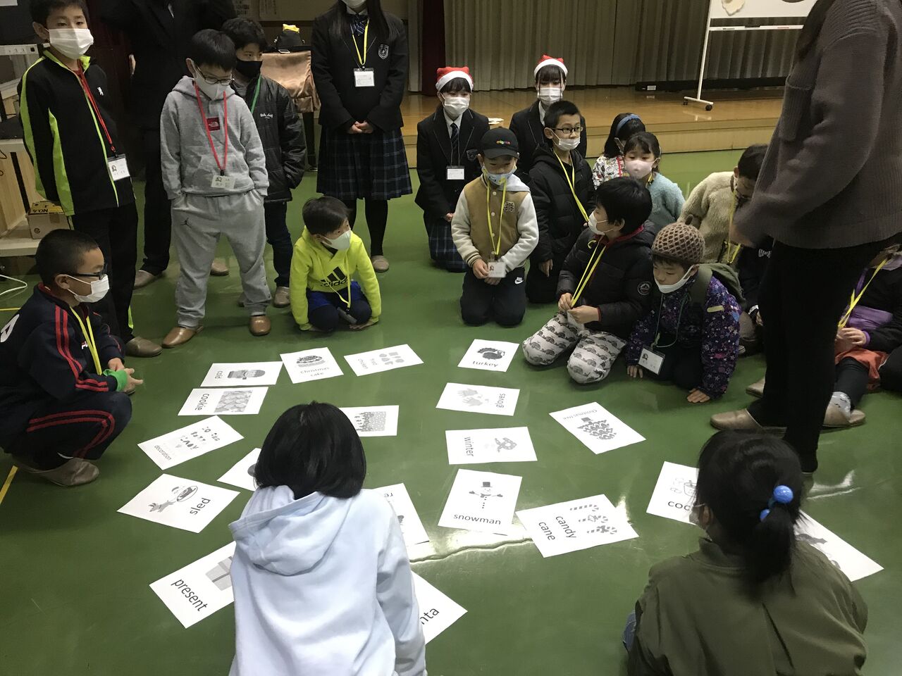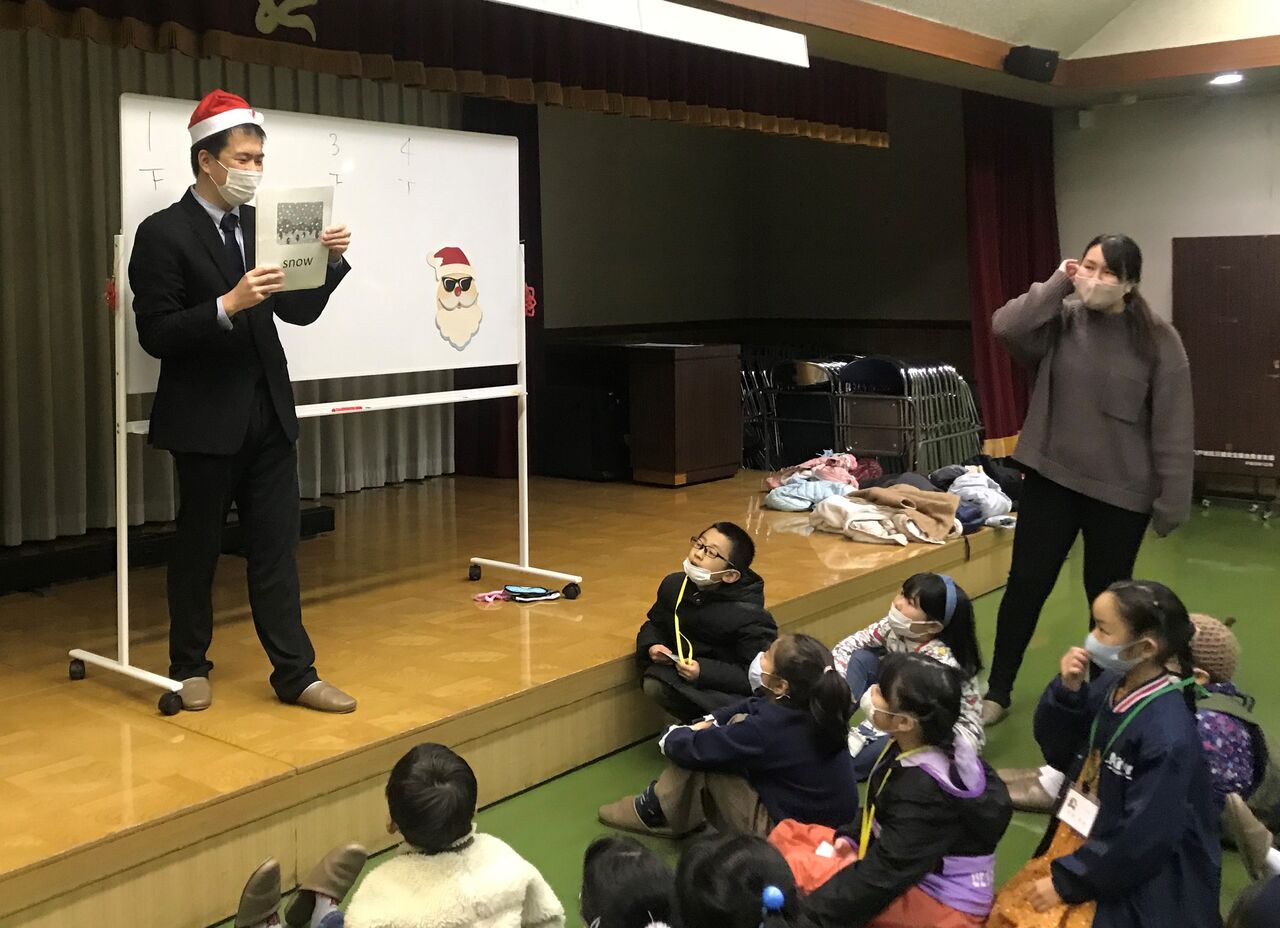 八戸工業大学第二高等学校ALTのアンディ先生や英語の佐々木先生にクリスマスシーズンの単語や英会話を教えていただき、サンタの福笑いなどのゲームを楽しみました。