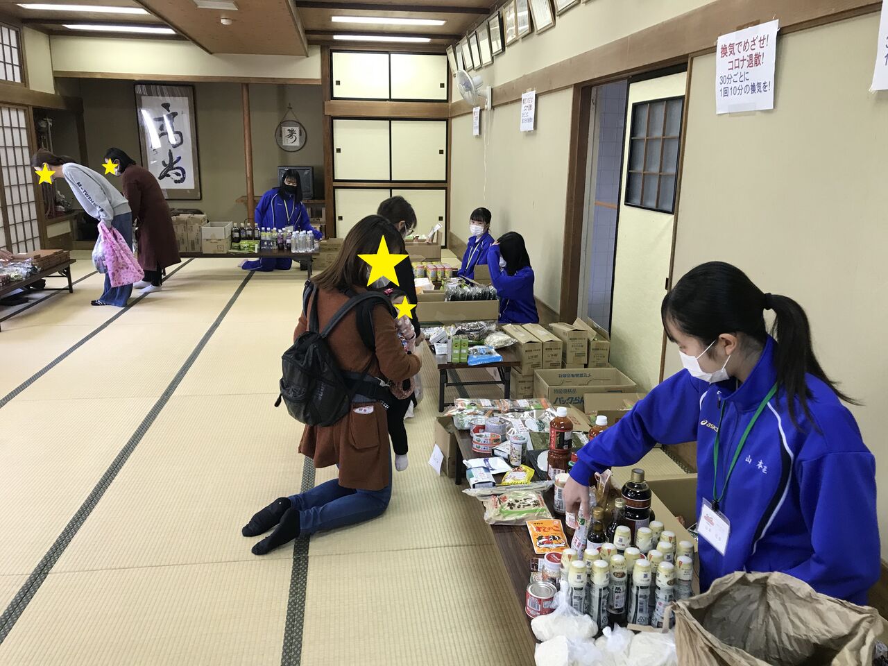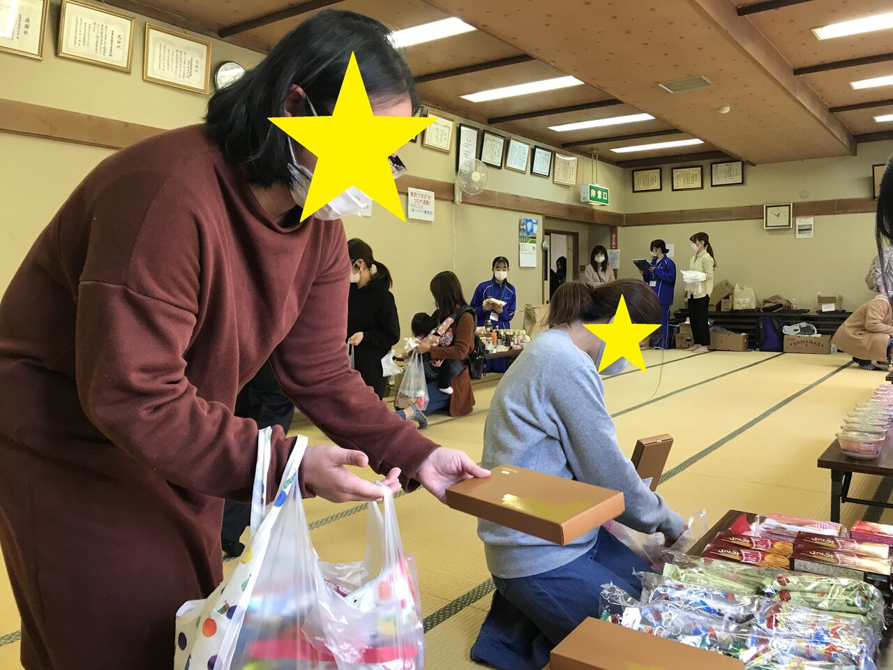 4//25(日)長者公民館さんをお借りしてフードパントリーを行いました。今回は食料品の他日用品雑貨、学用品まであり自分で選んだものをレジ袋一杯に詰めて持ち帰って頂きました。今回の目玉は新鮮な「ゴールデンキーウイ」と箱入りの高級(?)チョコレート菓子。多くの方に大変喜んでいただきました。今回も工大二高の生徒さん10名がボランティアとしてお手伝いくださいました。どうもありがとうございました!