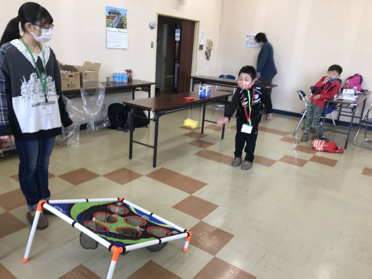 5/30(日)10時~12時、長者公民館で学習会を行いました。前半の1時間はしっかり勉強を、後半の1時間はお楽しみ会。今月は「的あてゲーム」。的に向かってボールやお手玉を投げて点数を競いました。得点を集計するまでの間には新聞紙の「は」やカタカナ語を探すゲームで盛り上がりました。上位3位の入賞者には「うまい棒トロフィー」の豪華(笑)プレゼント。楽しい時間を過ごしました。