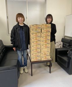 10/29(水)株式会社宝幸八戸工場様より鯖、いわし、さんまの缶詰18箱を寄付していただきました。缶詰は常温保存でき、手間をかけずすぐに食べられるので毎回大好評です。宝幸様ご支援いただきありがとうございました!